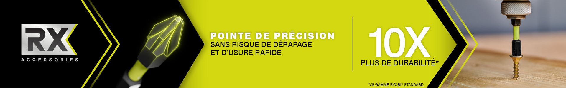 Issus de la gamme d'accessoires haute performance RYOBI® RX, les embouts de vissage à impact RX sont conçus pour offrir un couple élevé et résister à un usage intensif. Ils offrent une durée de vie jusqu'à 10 fois supérieure à celle de la gamme de vissage RYOBI® de base. Fabriqués à partir de matériaux résistants aux impacts, ils intègrent une zone d'absorption des chocs qui minimise les dommages dus aux impacts et prolonge leur durée de vie. Leurs pointes de précision garantissent un ajustement parfait, réduisant le glissement et l'usure au fil du temps. Leur revêtement en oxyde noir offre une protection supérieure contre la corrosion. Conçus pour maintenir des performances optimales sur chaque projet, ces embouts sont fiables pour tout type de tâches même les plus exigeantes.