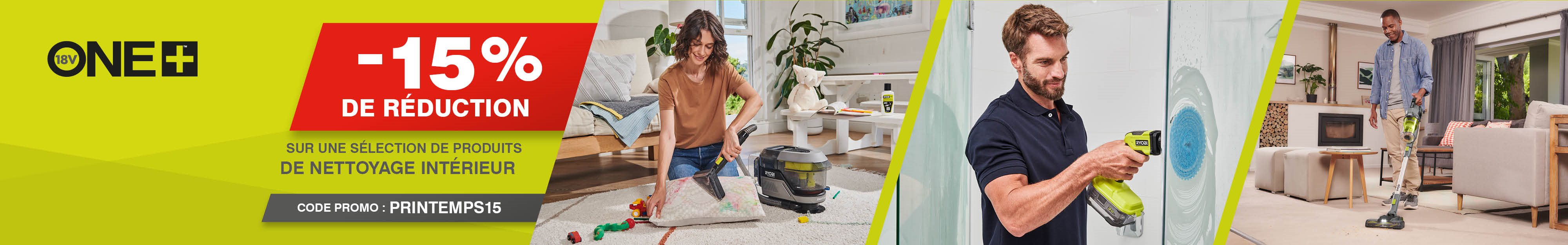 Comment bénéficier de la promotion ? Ajoutez vos articles au panier sans sélectionner l’article offert(cette offre n’est pas cumulable avec la remise de -15 %). Validez ensuite votre panier, puis saisissez le code promo PRINTEMPS15. Offre valable jusqu'au 6 avril et non cumulable avec d'autres promotions RYOBI en cours.