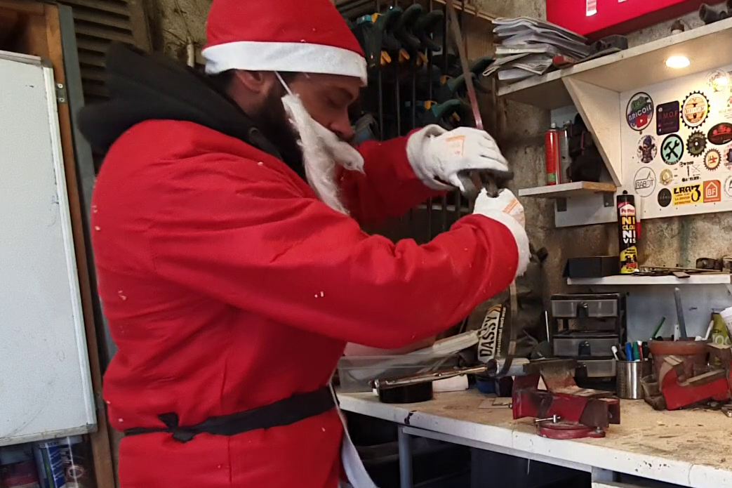 9. Pour habiller les “lames” du traîneau, arrondissez le fer plat autour d'un tube.
