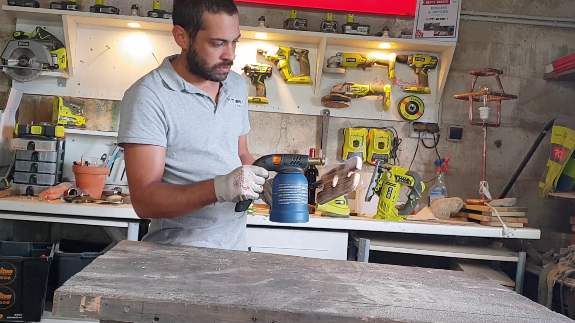 6- Il ne vous reste plus qu'à passer un produit de finition. Dans mon cas j'ai opté pour le chalumeau pour noircir le bois et faire ressortir le veinage avant de le vernir.